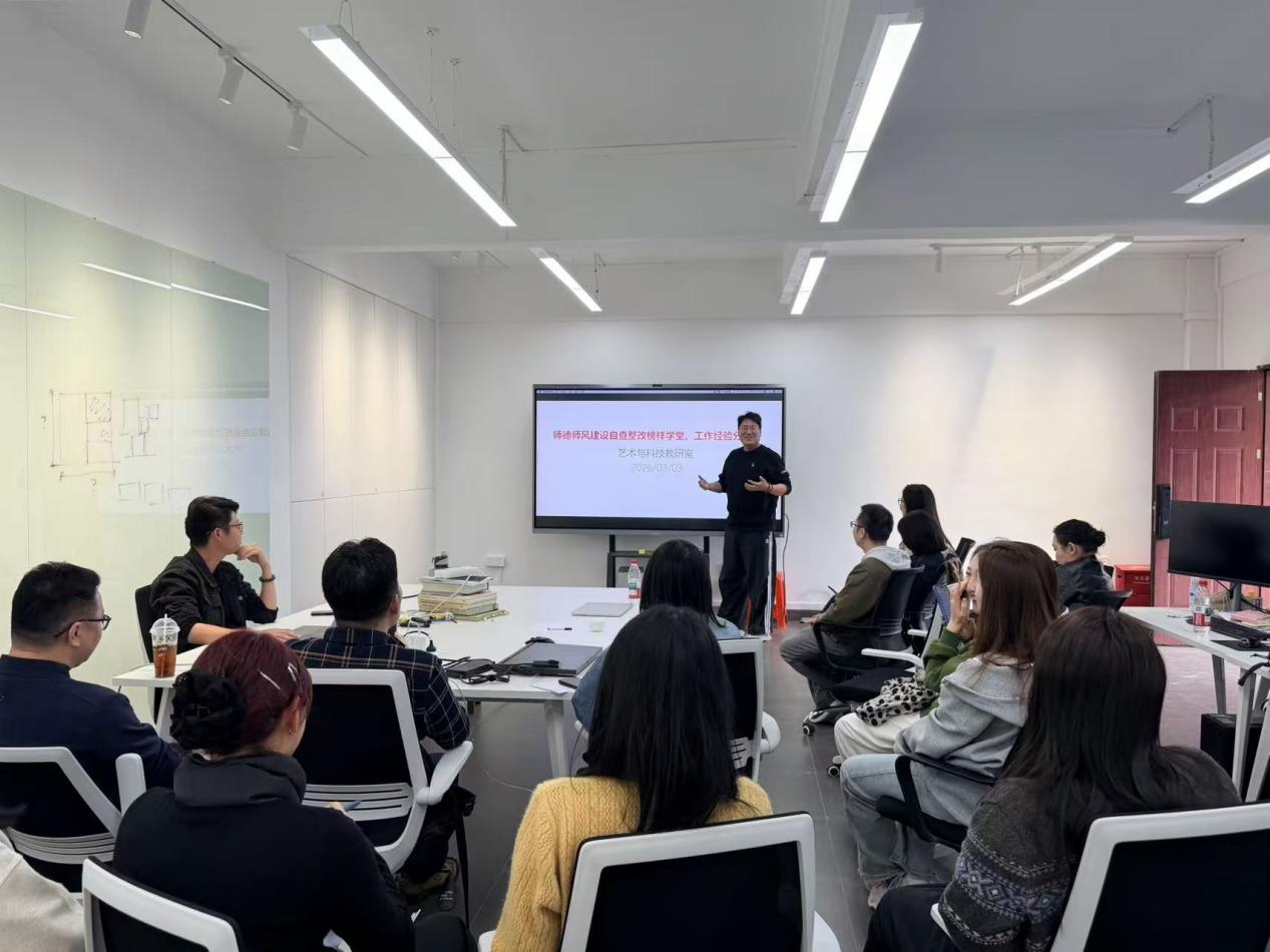 为深入贯彻落实新时代教师队伍建设改革要求,进一步夯实师德师风建设根基,2026年3月3日,广州商学院艺术设计学院视觉传达设计系艺术与科技教研室在艺术楼召开师德师风建设自查整改“榜样学堂”暨工作经验分享会,教研室全体教师参加会议。