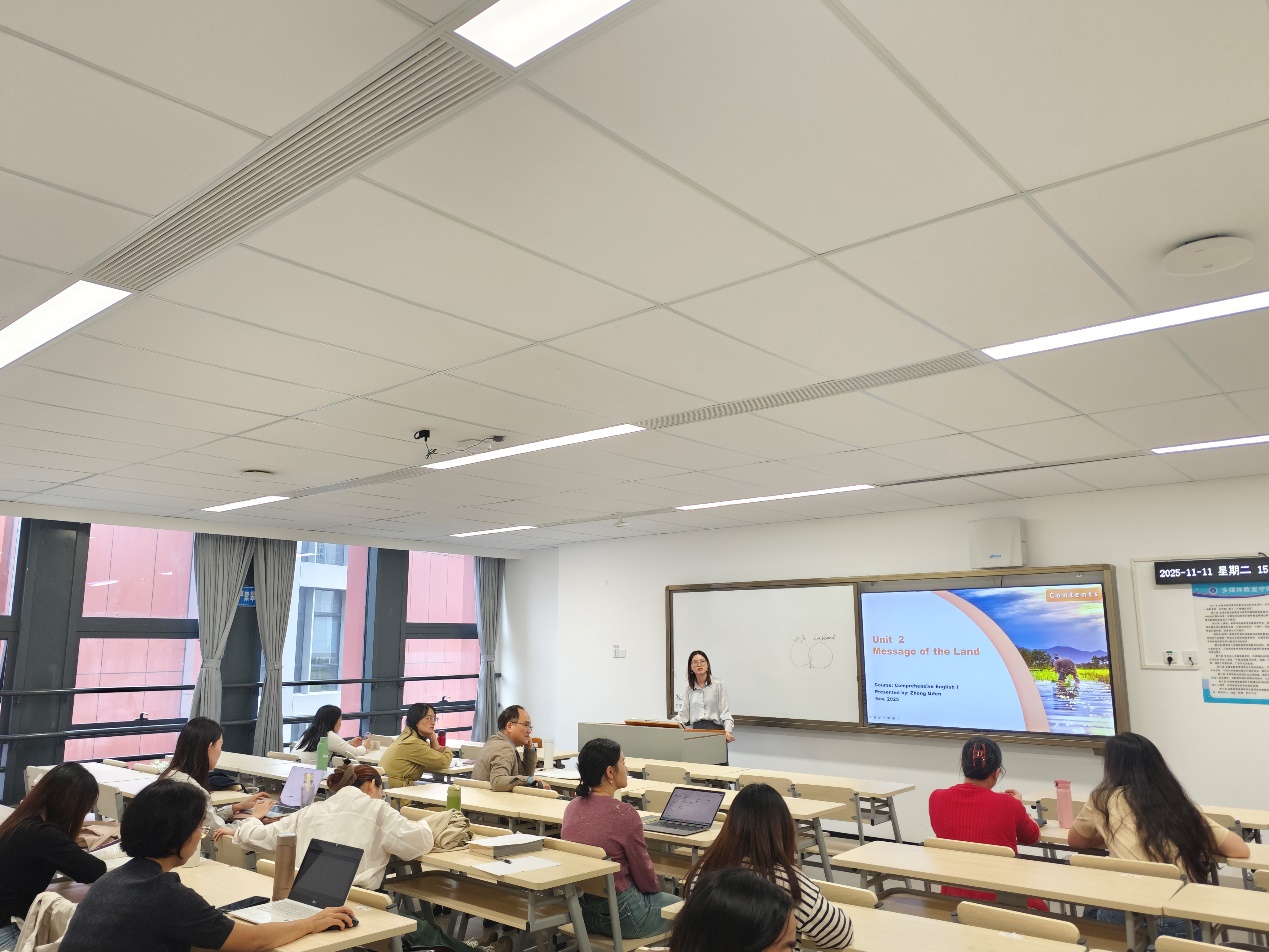 在随后召开的商务英语系期中教师座谈会上,各位教师聚焦“如何运用数智赋能教学质量提升”核心议题展开深入交流。会上,李望华主任首先汇报了今后对于强化专四训练的初步计划,以及期中教学检查的整体情况,客观呈现当前教学工作中的优势与不足。紧接着新教师分享了当前教学中遇到的困境,如课堂互动,课堂纪律,教材的适用性等;有经验的教师则结合自身教学实践,分享了在数字化教学、课程思政等方面的教学经验,同时围绕“如何提升学生课堂参与度”“怎样利用AI助力提升学生的语言能力”等实际问题展开讨论,现场气氛热烈,形成诸多切实可行的解决方案。在场教师表示受益匪浅。